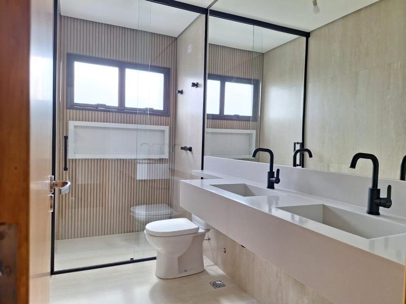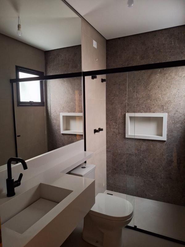 Lindos sobrados com acabamento de alto padrão! São 03 dormitórios, sendo todos suítes, ampla sala, cozinha, wc, garagem para 04 veículos, quintal grande com churrasqueira, área de serviços. Possuem persianas automatizadas, quadro de carregamento para carros elétricos e porta de entrada com fechadura eletrônica.